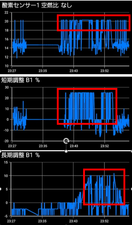 つまり「ECU は燃料を増やしているつもりなのに、実際には燃料が来ていない」という状況が発生しています。